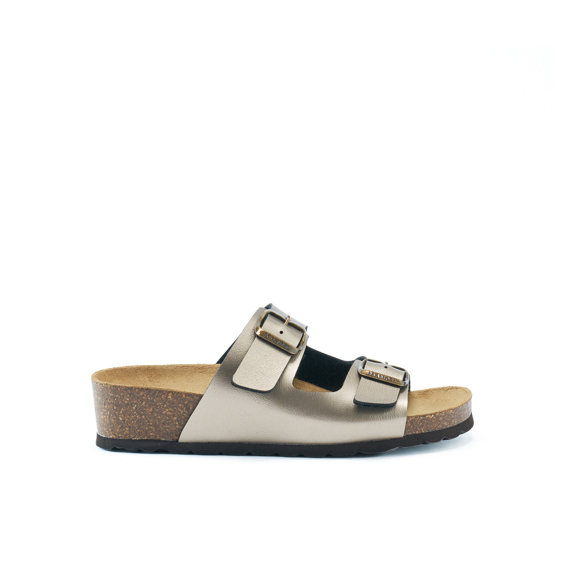 • Gold two-strap sandals ALBERTO made with eco-leather