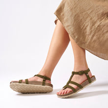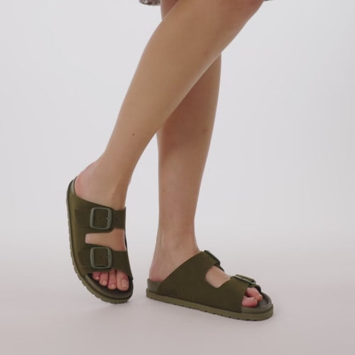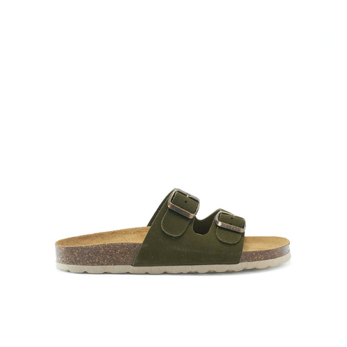 NINA moss green sandals. EVA outsole. Upper are in suede leather and insole are in leather.