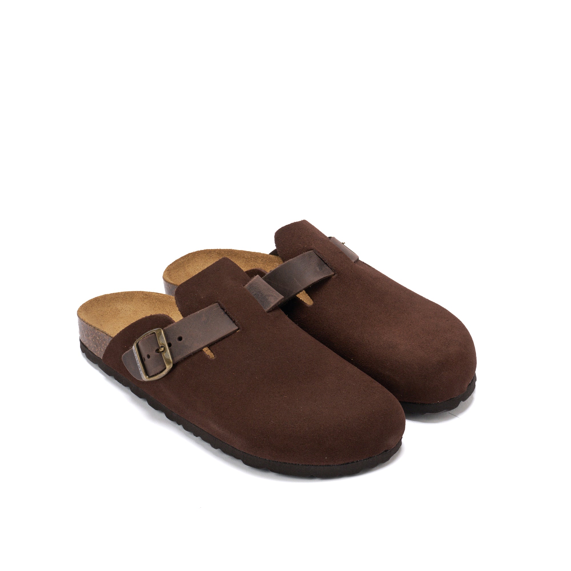 Dark Brown sabot clogs ADAM made with nubuck leather