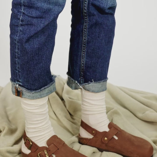 OSCAR dark brown sabot clogs. EVA outsole. Upper are in nubuck leather and insole are in textile. The ultimate clog: naturally slip-on, with a super comfortable fit. The sturdy and elegant upper protects your toes, while the anatomical footbed by Mandèl cradles and supports your foot. The sole, incredibly lightweight, flexible, and durable, ensures stable footing both indoors and outdoors.