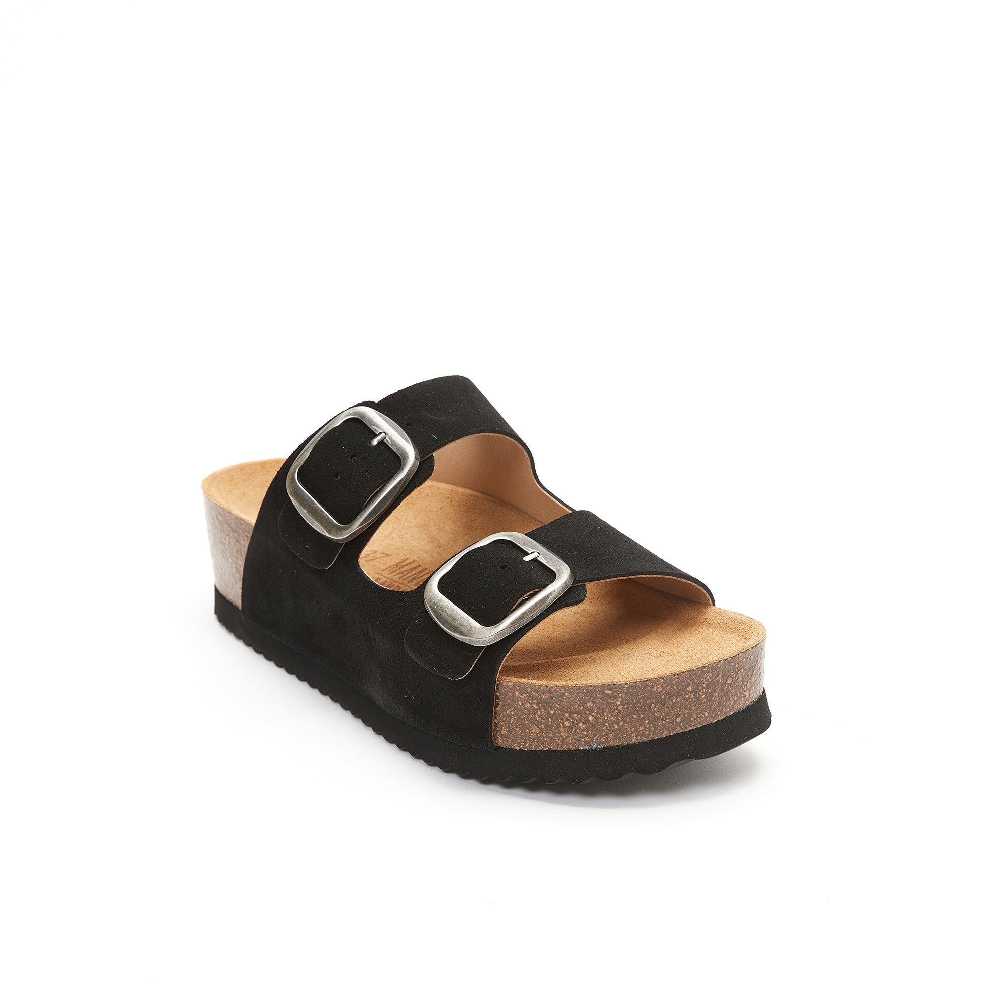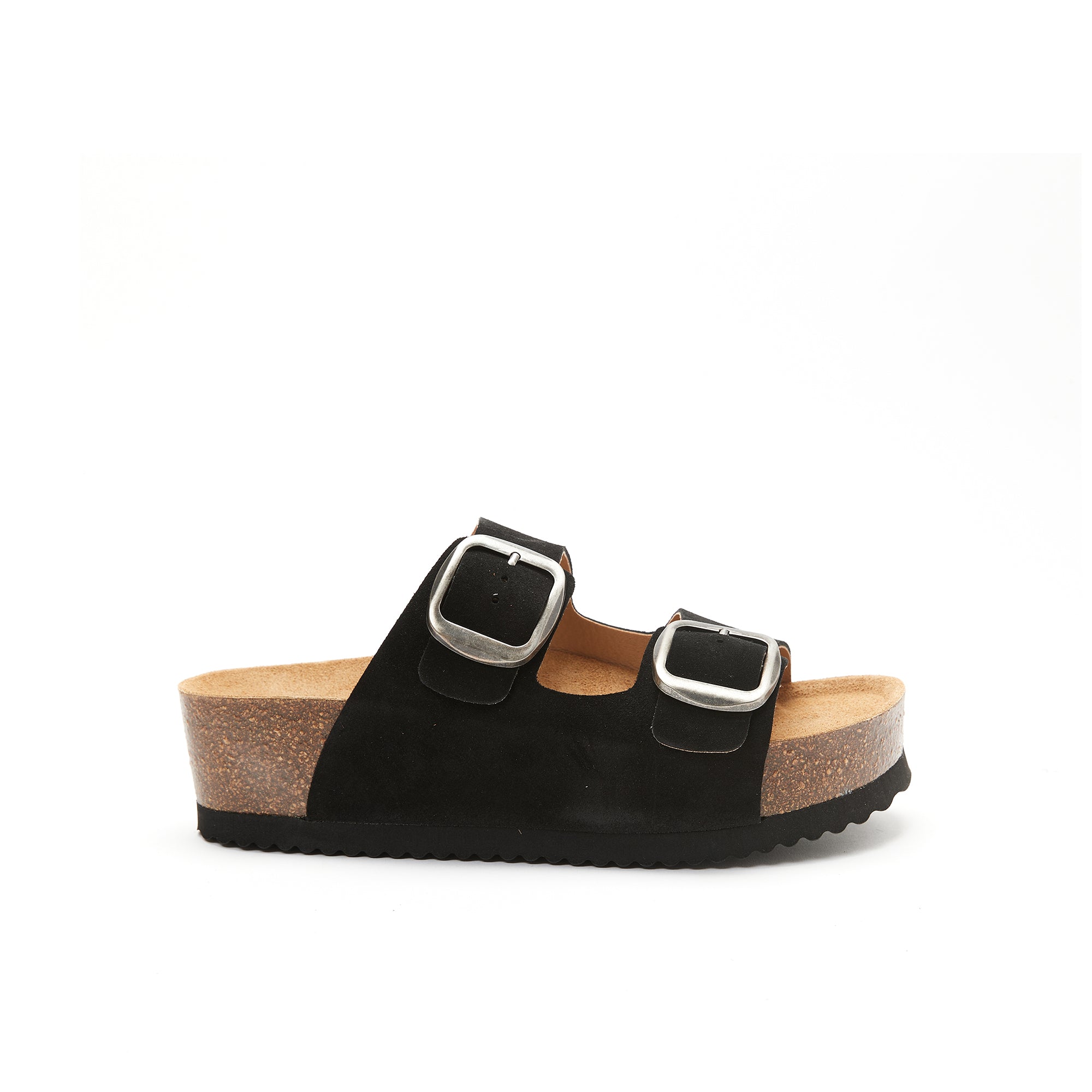 ZOE plateformes noires. Semelle extérieure en EVA. Tige en daim, doublure en éco-cuir et semelle intérieure en cuir. Chic, branchées et exceptionnellement confortables. Passez à l'étape supérieure en été avec nos fameuses sandales à plateforme. Des matériaux de qualité supérieure, un design italien et une fabrication soignée confèrent à ces sandales une allure exceptionnelle, que ce soit en se prélassant dans un bistrot de bord de mer ou en se baladant en ville. La semelle intérieure matelassée et la légèreté de la semelle garantissent une bonne respirabilité et une démarche élastique à toute heure du jour et de la nuit.