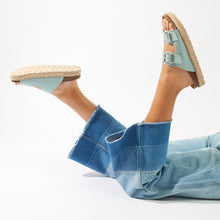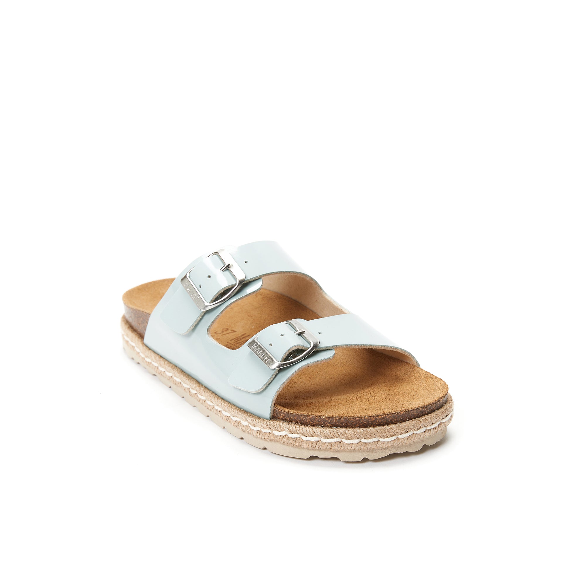 ANA plates-formes bleu clair. Semelle extérieure en EVA. Tige en cuir éco, doublure en feutre et semelle intérieure en cuir. Chic, branchées et exceptionnellement confortables. Passez à l'étape supérieure en été avec nos fameuses sandales à plateforme. Des matériaux de qualité supérieure, un design italien et une fabrication soignée confèrent à ces sandales une allure exceptionnelle, que ce soit en se prélassant dans un bistrot de bord de mer ou en se baladant en ville. La semelle intérieure matelassée et la légèreté de la semelle garantissent une bonne respirabilité et une démarche élastique à toute heure du jour et de la nuit.