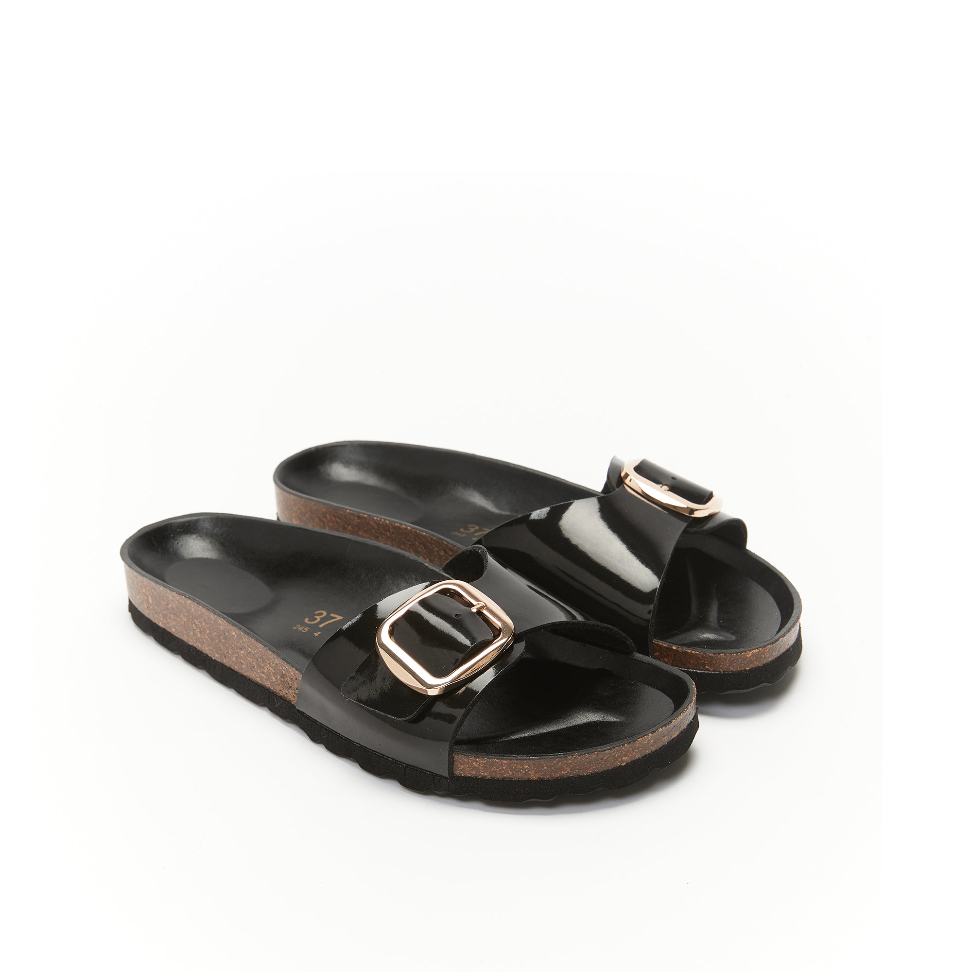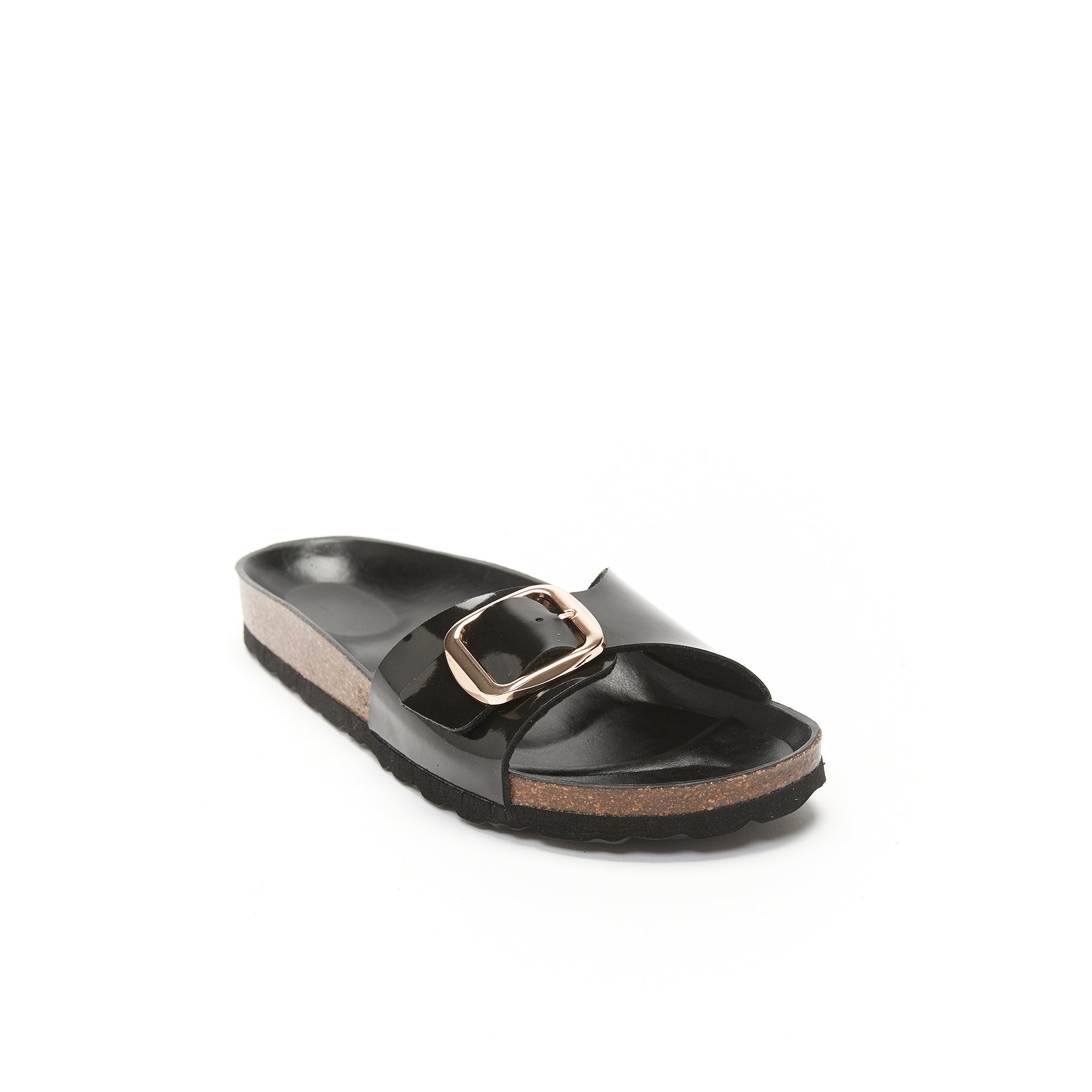 Sandale à deux lanières ALBERTO en cuir éco noir