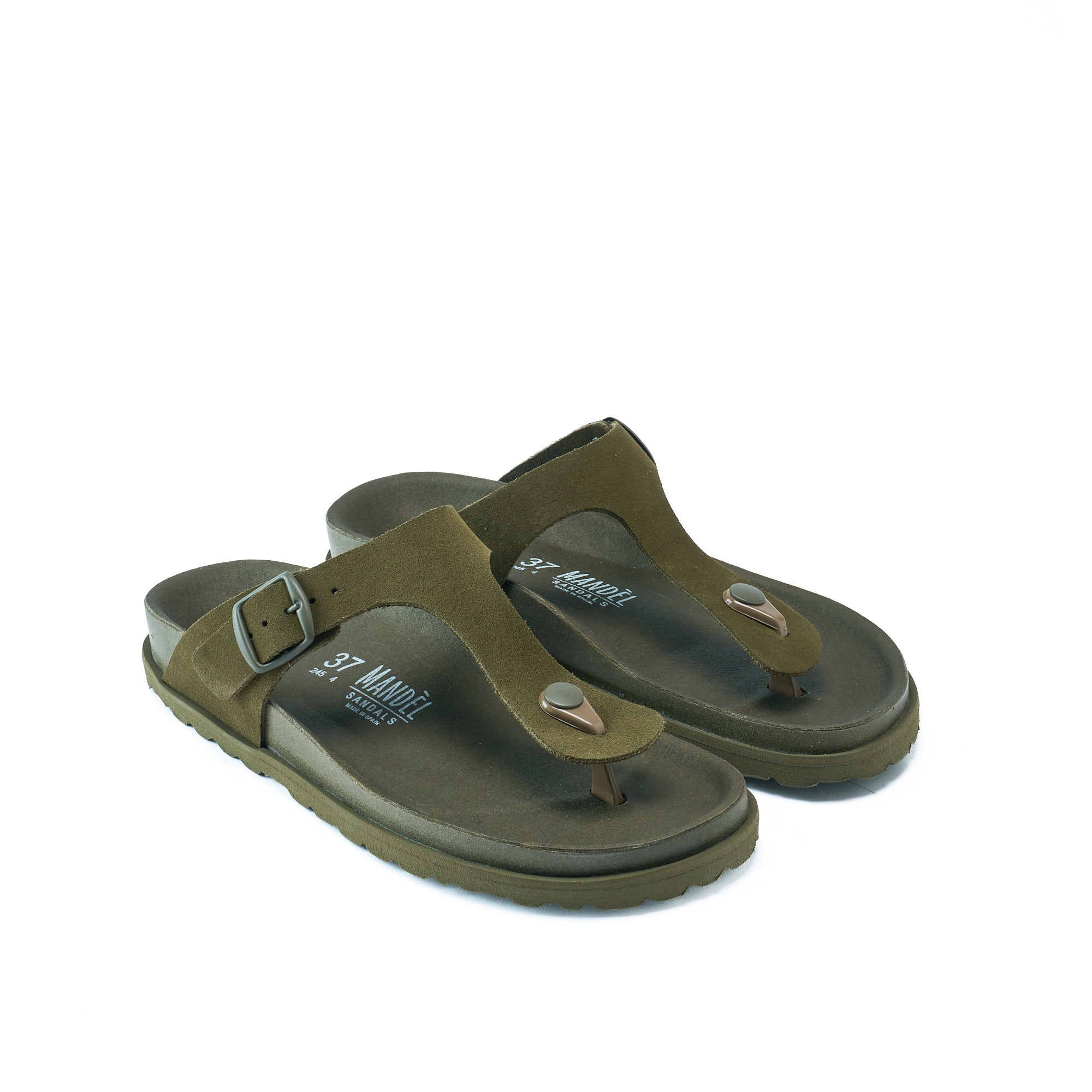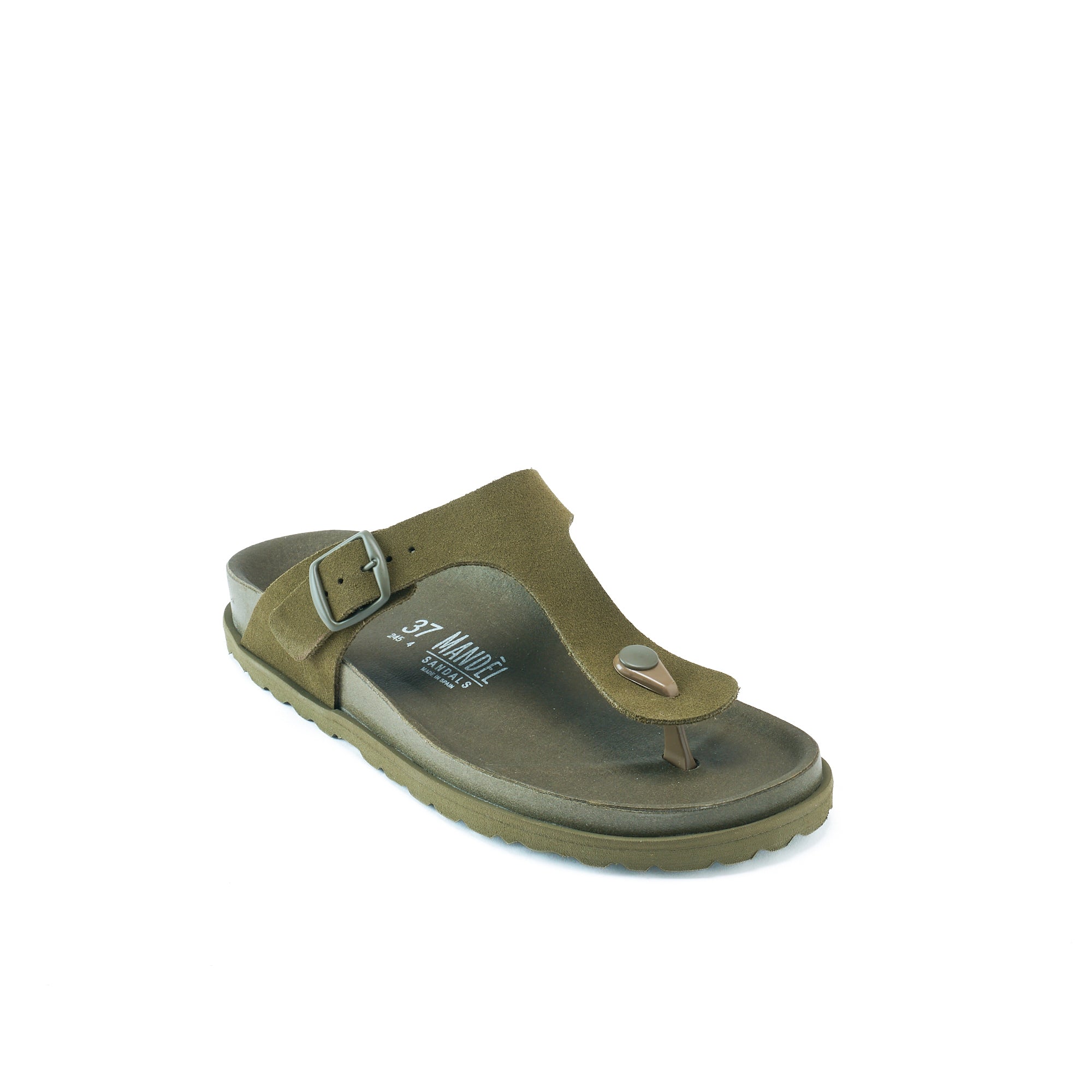 Green Tea thong BLANCA BIG BUCKLE made with eco-leather