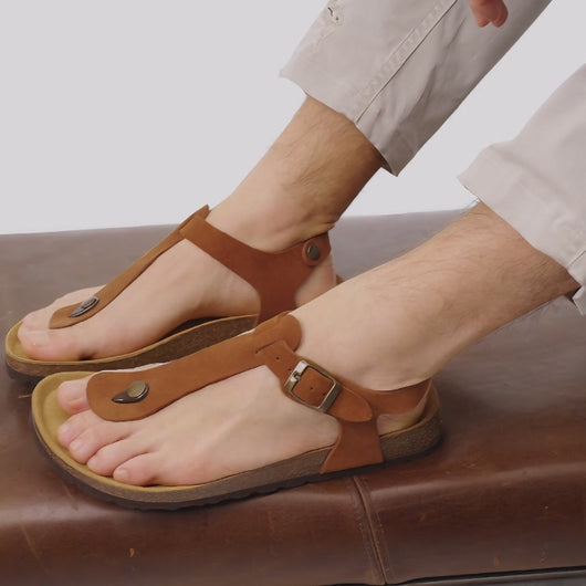 • Cognac Brown two-straps ALBERTO made with eco-leather