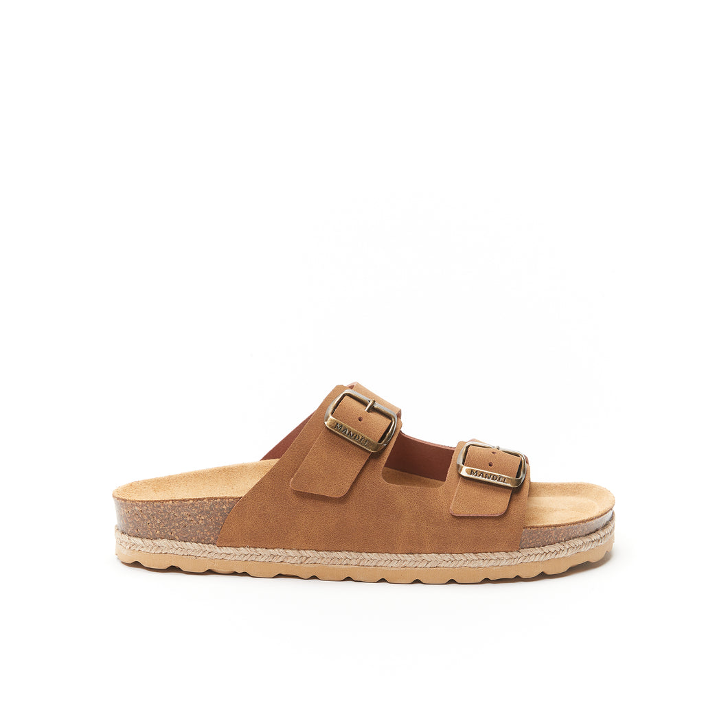 Cognac Brown sandals CARLOS BIG BUCKLE made with eco-leather