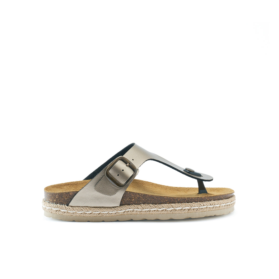 Ciabatta infradito GALA di colore bronzo. Suola in EVA, tomaia in eco-pelle, fodera in feltro e soletto in pelle. Stilose, ricercate e comodissime: le nostre calzature con platform non possono davvero mancare nel tuo guardaroba. Il design esclusivo 100% italiano, l’impeccabile lavorazione artigianale e i materiali di qualità con cui sono realizzati li rendono perfetti per ogni luogo e situazione, tutto l'anno. Il confortevole plantare anatomico e la suola leggerissima garantiscono la massima traspirabilità assicurandoti un passo scattante h24.