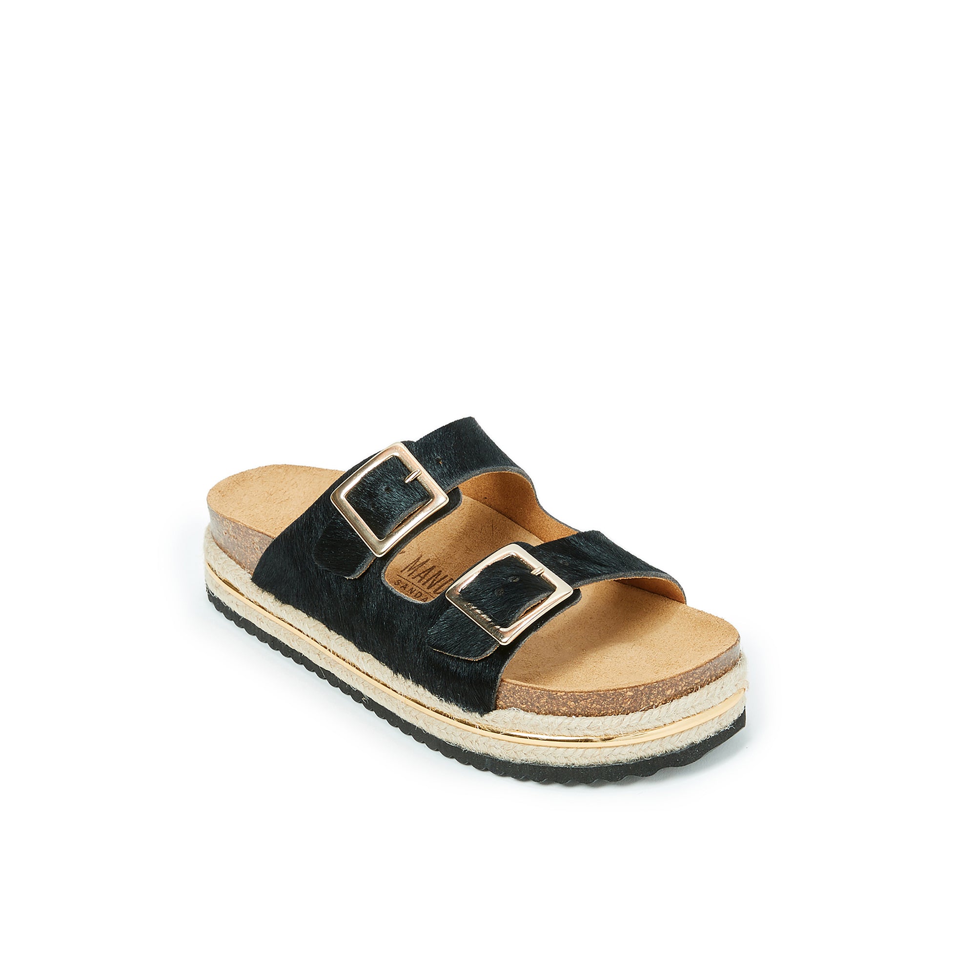 Ciabatta due fasce AURORA di colore nero. Suola in gomma, tomaia, fodera e soletto in glitter. Zeppa fasciata in corda. Stilose, ricercate e comodissime: le nostre calzature con platform non possono davvero mancare nel tuo guardaroba. Il design esclusivo 100% italiano, l’impeccabile lavorazione artigianale e i materiali di qualità con cui sono realizzati li rendono perfetti per ogni luogo e situazione, tutto l'anno. Il confortevole plantare anatomico e la suola leggerissima garantiscono la massima traspirabilità assicurandoti un passo scattante h24.