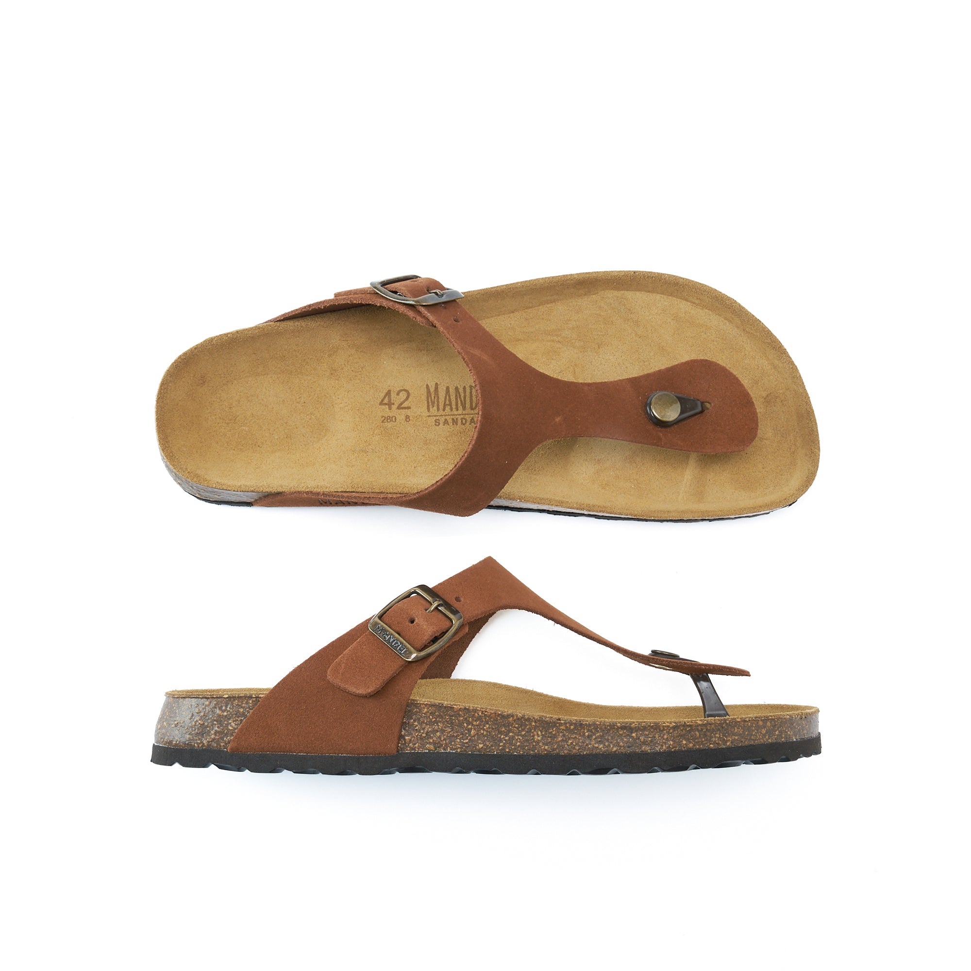 Sandalo infradito DAVID di colore castagna. Suola in EVA, tomaia in pelle scamosciata e soletto in pelle. I sandali infradito, amatissima e iconica calzatura, regalano un senso di spensieratezza e leggerezza e un’allure sbarazzina e raffinata che fa sognare. Nati dall’estro creativo di brillanti designer italiani, realizzati artigianalmente in Spagna e corredati dall'esclusivo plantare in sughero e lattice, gli infradito Mandèl ti regalano il massimo del comfort, un appoggio perfetto e un’eleganza minimal senza pari.