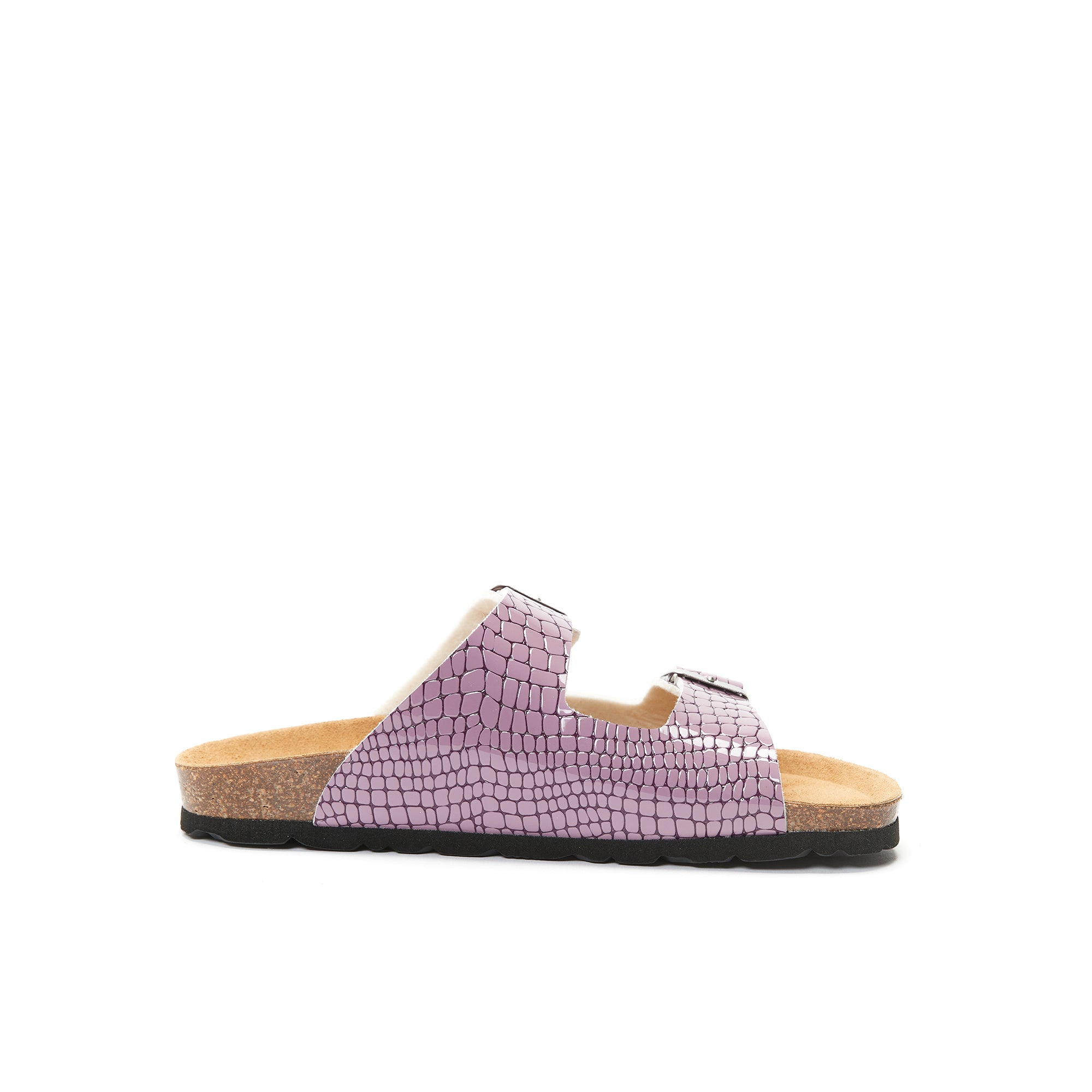 Ciabatta due fasce ALBERTO di colore viola. Suola in EVA, tomaia in eco-pelle, fodera in feltro e soletto in pelle. Un pezzo cult dalla comodità leggendaria. Minimal e raffinate, i sandali a due fasce Mandèl sono perfetti per tutti coloro che cercano una calzata perfetta senza rinunciare al look. Ideali per il tempo libero, si abbinano perfettamente anche a outfit più sofisticati. Le due fasce regolabili 'fermano' la scarpa al piede assicurando una presa sicura, mentre il plantare ultra-confortevole garantisce traspirabilità e un passo disinvolto.