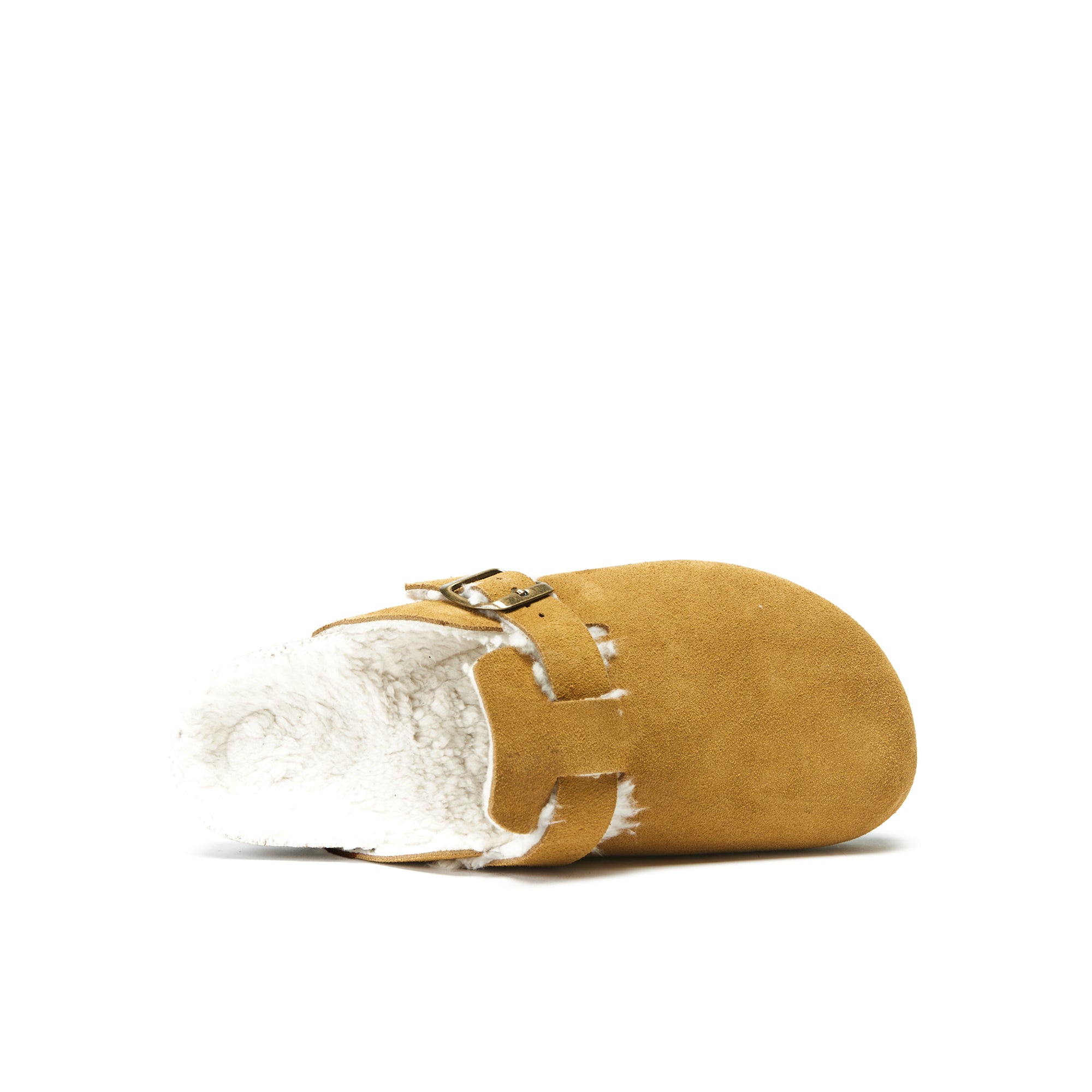 Pantofola NOE di colore marrone. Suola in EVA, tomaia in pelle scamosciata, fodera e soletto in pelliccia ecologica. Il sabot per eccellenza: naturalmente slip-on, con una calzata super confortevole. La tomaia robusta ed elegante protegge le dita dei piedi e il plantare anatomico firmato Mandèl culla e sostiene il piede. La suola, leggerissima, flessibile e robusta, garantisce un appoggio stabile sia dentro che fuori casa.
