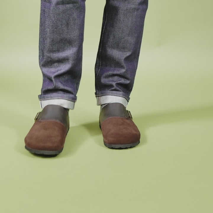 • Dark Brown sabot clogs OSCAR made with nubuck leather